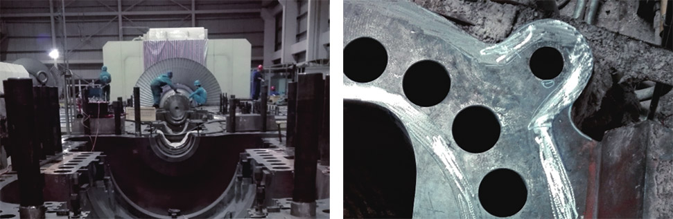 采用微弧焊接技術(shù)、上下缸對研等方式進(jìn)行汽缸結(jié)合面漏汽修復(fù),消除變形量。